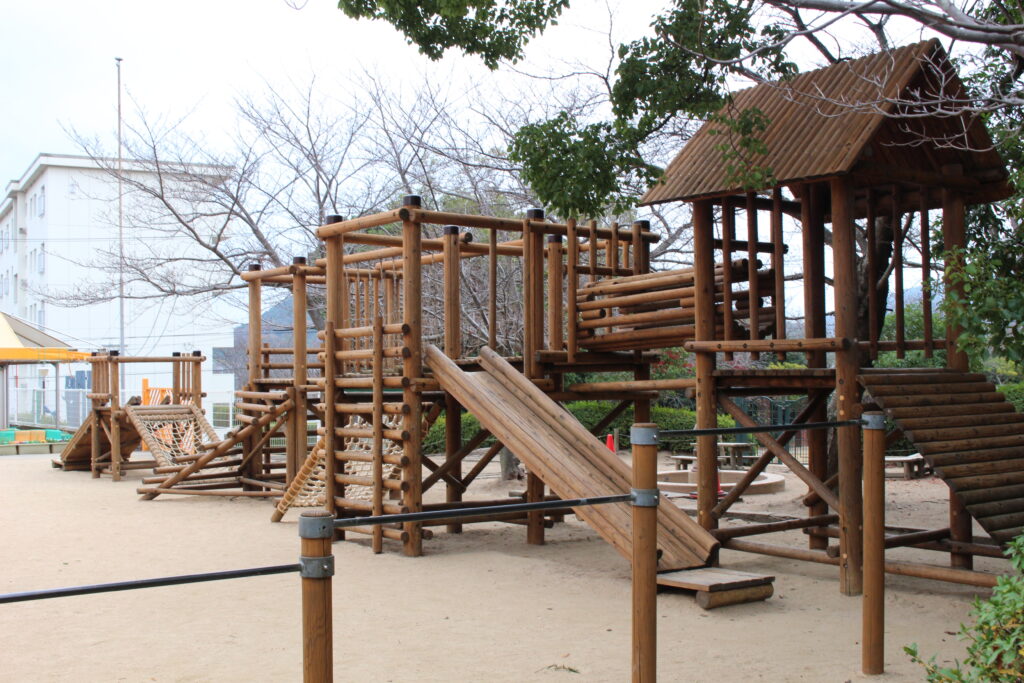 下関市の自然に囲まれた立地で、四季を感じながら遊べる園庭