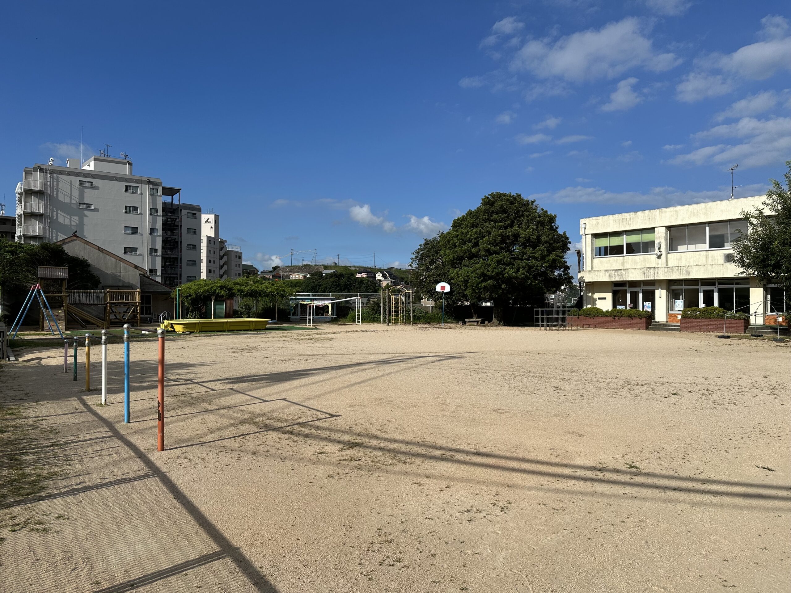 坂道を登ったら広い園庭があり、自然いっぱいの幼稚園です。
